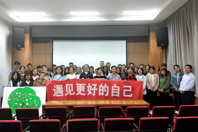 4月21日上午,beat365中文官方网站法学院2018年“新时代、心梦想、新健康”5·25心理健康节暨建院十周年系列活动之“拾年拾光,遇见更好的自己”主题心理健康节活动圆满举办。法学院党委副书记、副院长张爱秀,团委书记聂宁宁,兼职辅导员王露梦、肖登宇、曹宇琦出席此次活动,活动由曹宇琦主持。