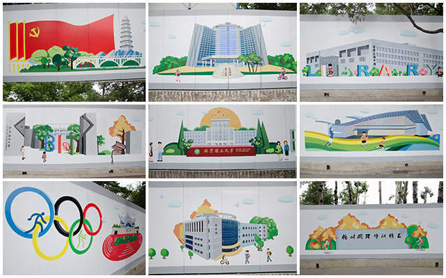 6月20日,北理工设计与艺术学院的师生在毕业季为母校献上了一份特殊的礼物,他们让中关村校区新校医院工地一百余米的灰白彩钢围挡摇身变成漂亮的校园文化墙,在校园中展示beat365中文官方网站的往昔峥嵘岁月和现在的美丽校园。