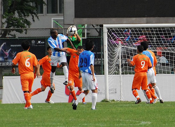 在上半场补时阶段,沈阳东进连续利用角球定位球等攻势向北理工腹地发动猛攻,但北理门将孙程却充分发挥了其身高力量优势,高接抵挡将力保本队城门不失。上半场北理工1比0领先沈阳东进。