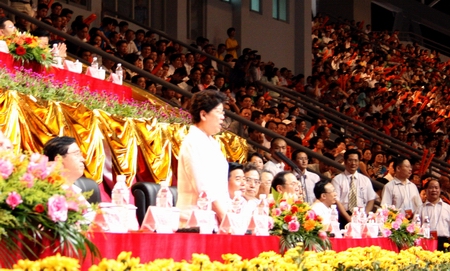 图为陈至立宣布中华人民共和国第八届大学生运动会开幕