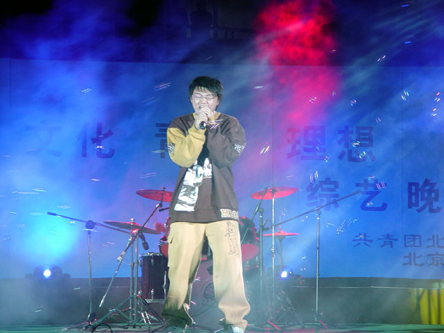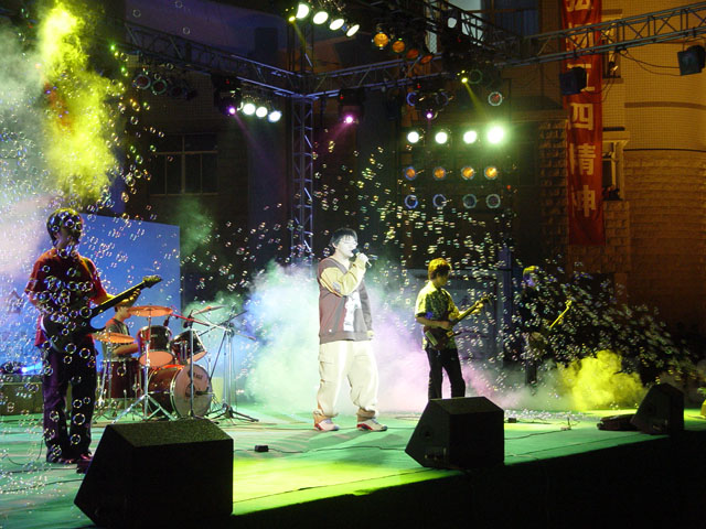 晚会刚一开场,乡琴俱乐部的摇滚乐队就把现场的气氛烘托到了一个小高潮。