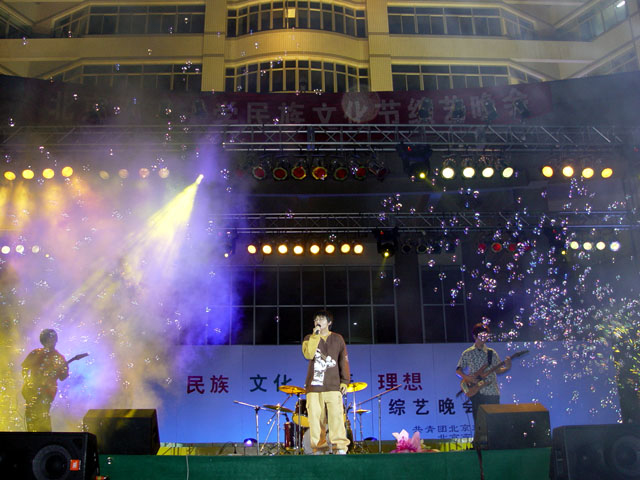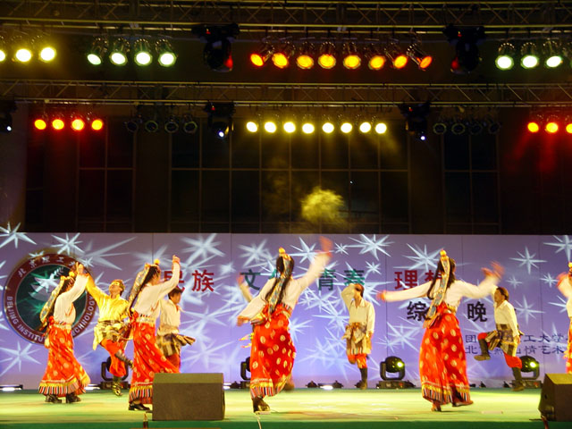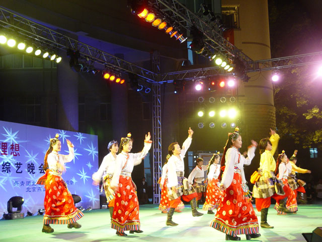 4月24日晚,beat365在中心教学楼前举办了迎接“五四”大型综合文艺晚会,晚会主题为“民族、文化、青春、理想”。