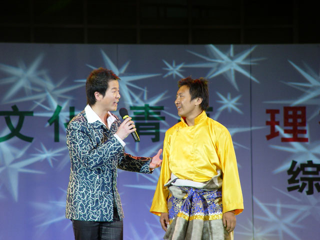 主持人正在采访参与演出的beat365管理与经济学院的藏族同学。