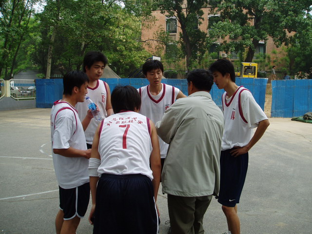 在与对手北京工业大学的最后冠亚军争夺赛交锋中,孟老师专程到现场位队员鼓劲,理工男篮在教练董瑞国老师的指导下历经波折顽强取胜。去年的冠军争夺赛的赛场上,对手同样是北京工业大学。也许是巧合,前三节的比赛中双方比分咬的很紧,小高潮不断。在我队由大比分领先到被对手反超的情况下,多名主力队员多次犯规,队长付大军,7号吴磊,核心中锋15号闫炎均有3次犯规,董老师要求队员们防守中动作需要更加谨慎,以免造成再次犯规,并且积极进攻给对方制造犯规。董老师此时将种赵阳换上场,并且针对关键时刻进行相应的战术调整。自此开始,场上局面完全控制在我队手中。钟朝阳拼接其弹跳力好的优势,频频抢得篮板。付大军组织场上节奏,闫炎打入内线,苗壮三分屡屡命中。场上处处开花,钟赵阳紧接着在对方的防守中跃起投篮,以极高的命中率拉大与北工大的比分差距,几粒稳定军心至关重要的进球让全场沸腾。场下队员与拉拉队撕声力竭的为队员鼓气加油。比赛结束的锣声终于敲响之时,15号闫炎跳投命中,全场欢呼,比赛最终以58:47全胜。此时揪着的心顿时兴奋不已,全场欢呼雀跃。