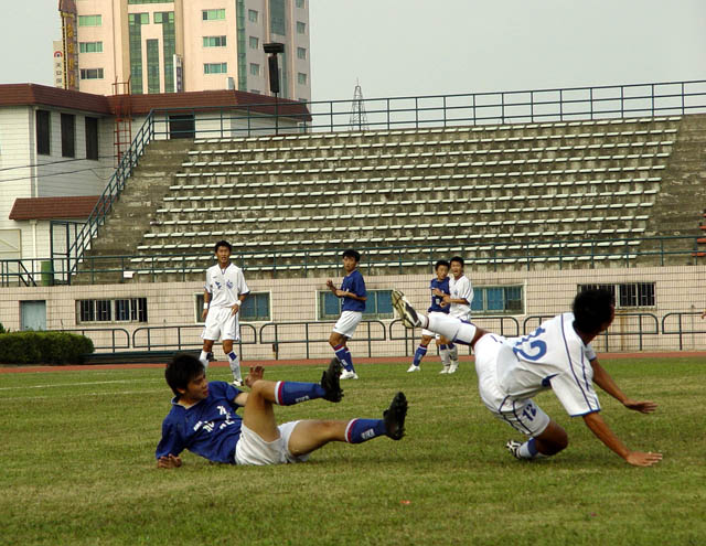 由于上海队的部分职业队员经验丰富,双方拼抢倒地后的多次假假真真的表演,使得本来就明显偏袒东道主球队的裁判给了我方队员四张黄牌,对方却一张黄牌也没有。