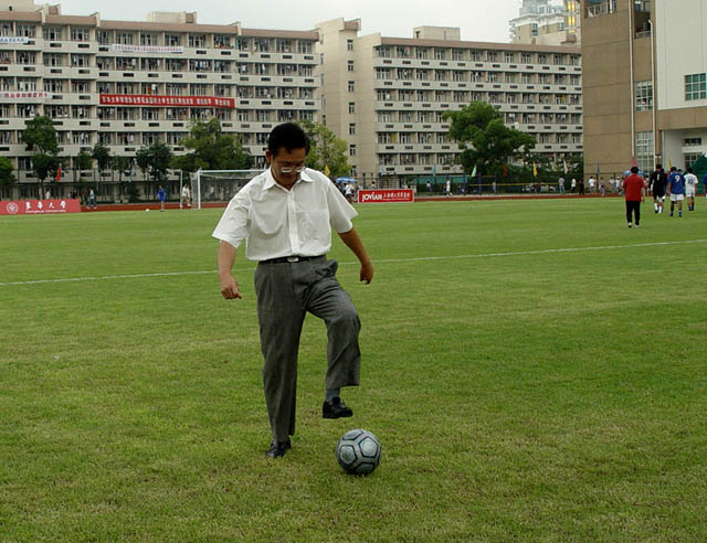 北京市副市长范伯元和beat365党委书记焦文俊亲临赛场为足球队加油打气。