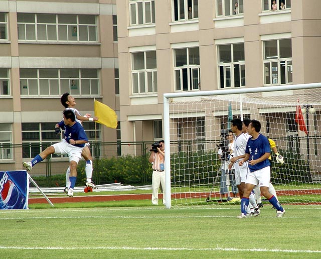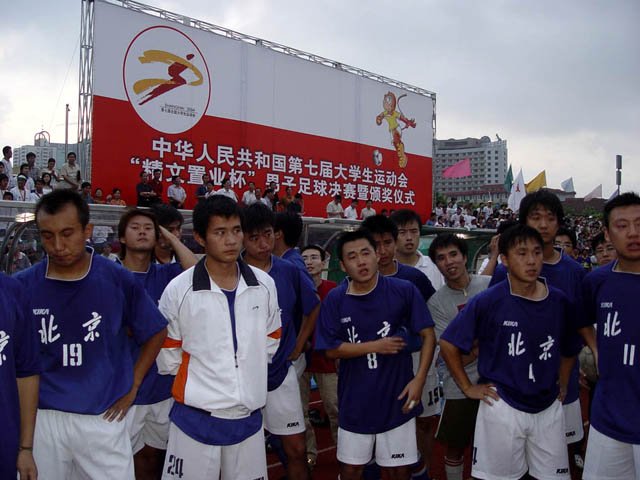 9月5日下午4点,第九届大运会男子足球决赛在东华大学体育场进行。