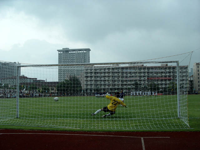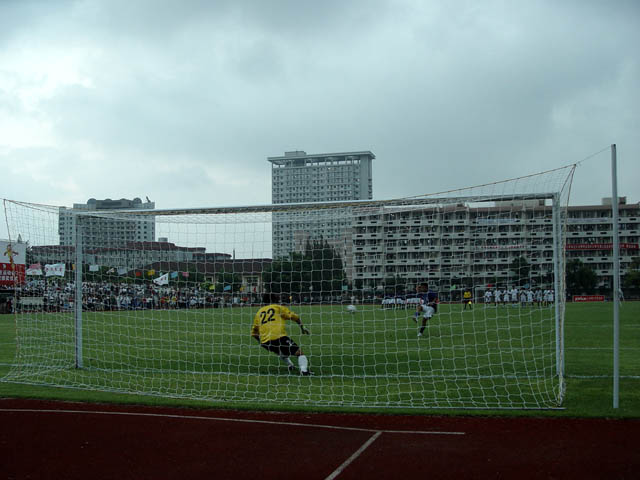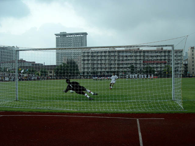 也许是队员求胜心切,接下来的一个点球踢的太正,被对方守门员扑出。