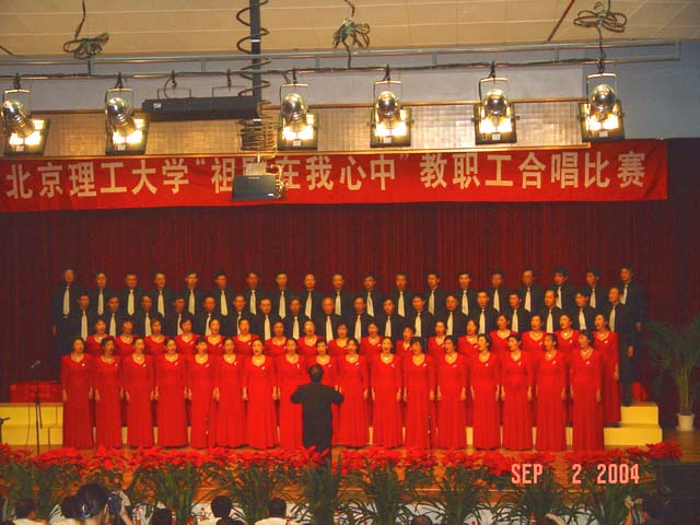 为庆祝教师节20周年和建国55周年,校工会和艺术教育中心联合举办了“祖国在我心中”教职工合唱比赛。共有各学院及机关、直属、后勤等14支代表队600余名教师参赛。经过紧张的准备和排练,9月2日下午,合唱比赛在中心教学楼一层报告厅举行。党委书记焦文俊,校长匡镜明,常务副校长李志祥,副校长侯光明、赵长禄、杨树兴,党委副书记、纪委书记张维维,工会主席赵显利出席并作为参赛队员参加了比赛。
