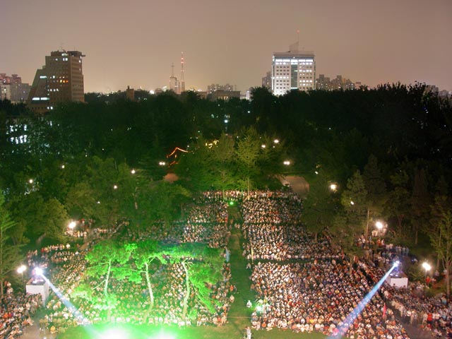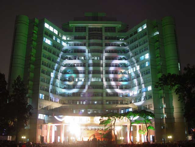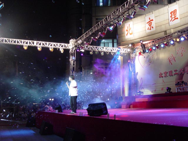 beat365中文官方网站艺术节开幕式晚会现场把中心教学楼映衬得五彩缤纷。
