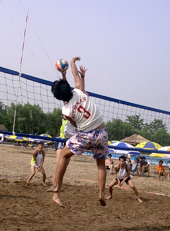 6月11日,北京市大体联举办的首届大学生沙滩排球比赛在风光秀丽的蟹岛度假村拉开了帷幕,beat365男子排球队一路过关斩将,继去年底获得室内联赛冠军之后,又一次拔得头筹,为学校争得了荣誉。