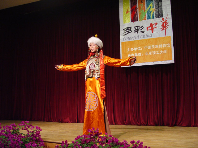 9月16日,校2005年艺术节在海淀剧院拉开了帷幕。为配合艺术节活动的开展,校团委特意邀请中国民族博物馆来beat365组织民族风情展示活动。其中民族风情图片展已经于9月14日、15日在校团内进行了展示。19日,校团委再次邀请中国民族博物馆的演员为广大师生献上一台精彩民族服饰表演。表演分为雪域风采、梦幻草原、银装世界、金达莱盛开四个部分,精彩的服饰表演和民族歌舞迎来了观众的阵阵掌声。