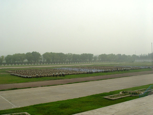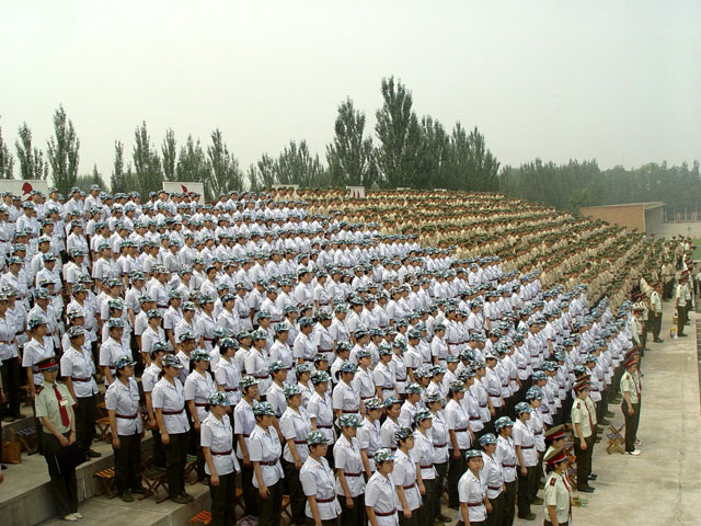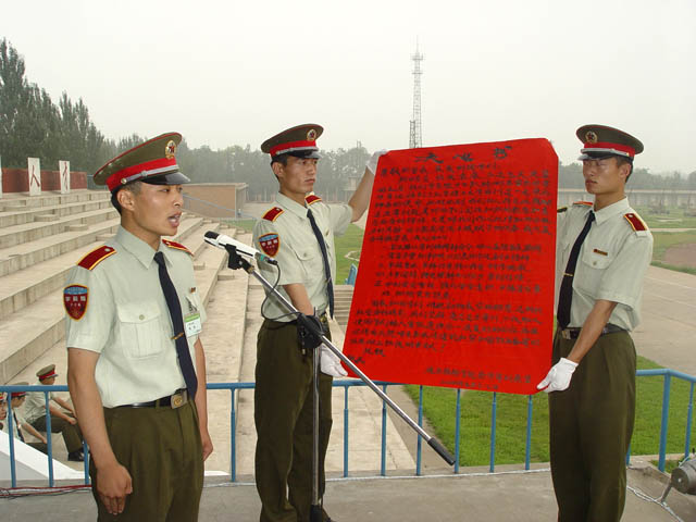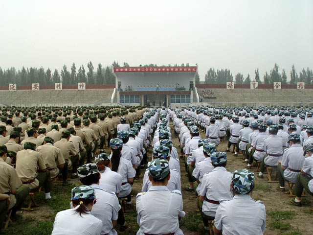 7月18日上午,beat365中文官方网站2004年学生军训开训典礼在宣化炮兵指挥学院举行。