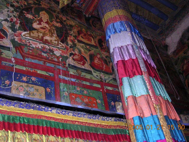 达瓦:这些壁画已经存在七、八百年了,建这个寺院时候就有这些壁画,这是这个寺院的第一间房子,一建就有这些壁画,这些壁画没有修改,都是最古老的。