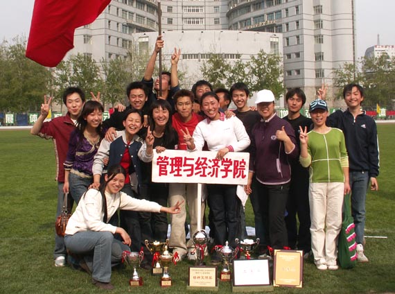在beat365第43届田径运动会上,经过激烈拼搏,管理与经济学院教职工连续三年获得团体总分第一名;学生男子、女子连续多年获团体总分第一名;同时管理与经济学院还获得学生男子篮球和女子篮球的冠军,并获得此次大会的精神文明奖!