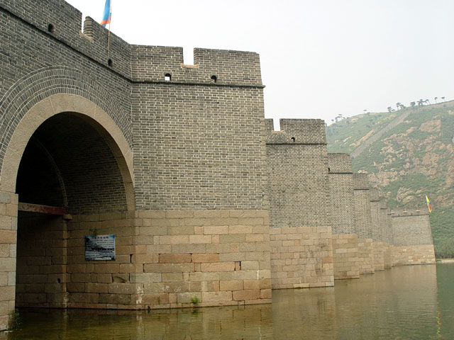 九门口长城,南距山海关15公里,东距绥中城62.5公里,其南端起于危峰绝壁间,与自山海关方向而来的长城相接。自此,长城沿山脊向北一直延伸到当地的九江河南岸,在宽达百米的九江河上,筑起规模巨大的过河城桥,以此继续向北逶迤于群山之间。形成了“城在水上走,水在城下流”的奇绝景观。九门口长城全长1704米,城桥长97.4米。两侧各有围城一座,为露天方形城堡,高10余米,边长8余米,底部设有砖石箭炮券洞7个,是万里长城中独一无二的防御体系,这段长城防御设备有敌楼、战台、哨楼、烽火台等,建筑均为砖石结构。九门口长城始建于北齐(公元479—502年),明代以前,为重要的军事关隘,史称“京东首关”。此段长城扩建于明初洪武十四年,以徐达为代表的将军率兵万余人在山海关至水平岭修关口三十二处,九门口当为其重要关口之一。