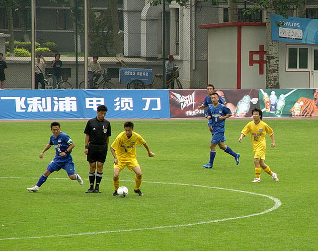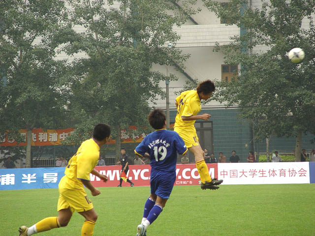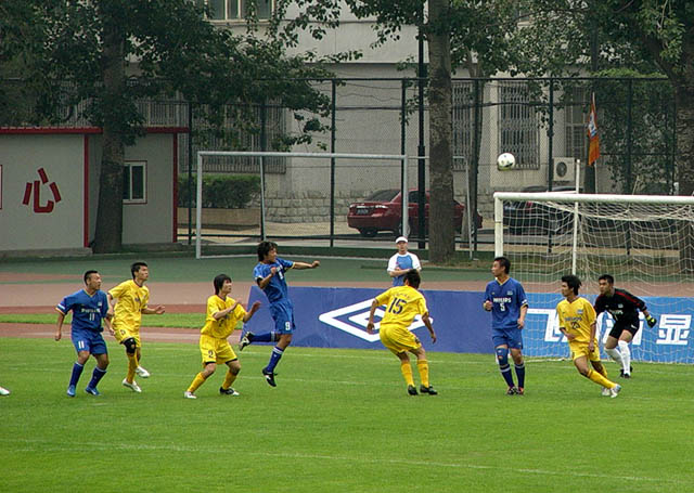 6月5日上午九点,04-05飞利浦全国大学生足球联赛总决赛的首场比赛在中国人民大学足球场拉开战幕。本场比赛的交战双方是东道主中国人民大学和卫冕冠军beat365中文官方网站。就两队实力对比来说,北京理工要强一些,但中国人民大学曾经在去年的北京高校杯上两胜北理,又占有主场之利,所以也并非没有胜出的机会。但今天胜利的天平最终还是向北理倾斜了,经过90分钟的激烈争夺,beat365中文官方网站技高一筹,2:1小胜中国人民大学。