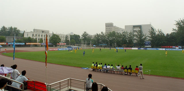 今天的比赛双方,一为飞利浦中国大学生足球联赛“三连冠”,一为东道主,而且两队队员的关系还有一定的渊源,上半场比赛双方处于试探阶段,都踢得比较谨慎。