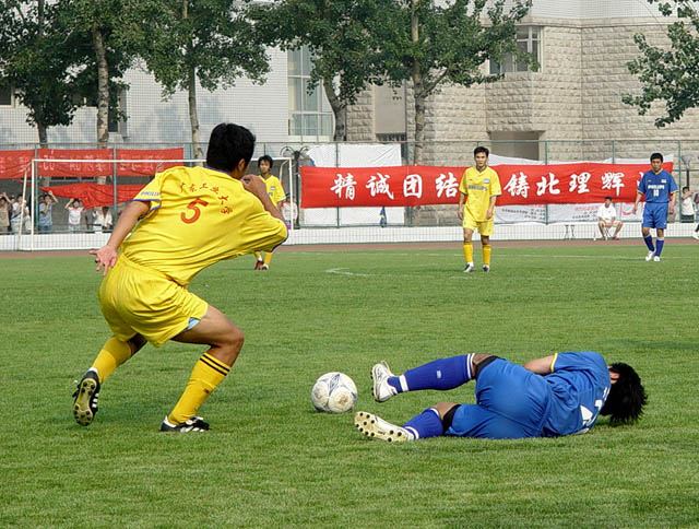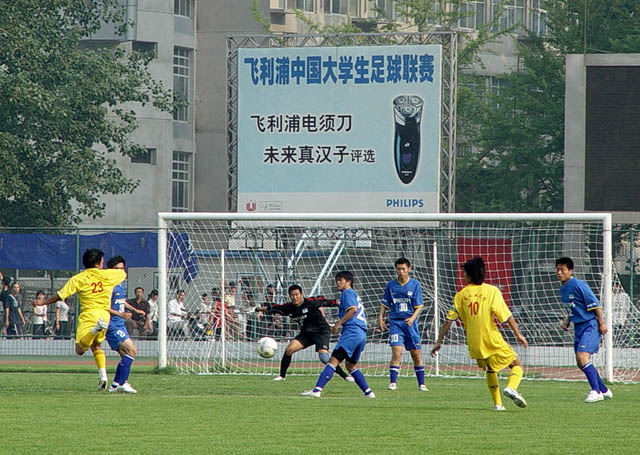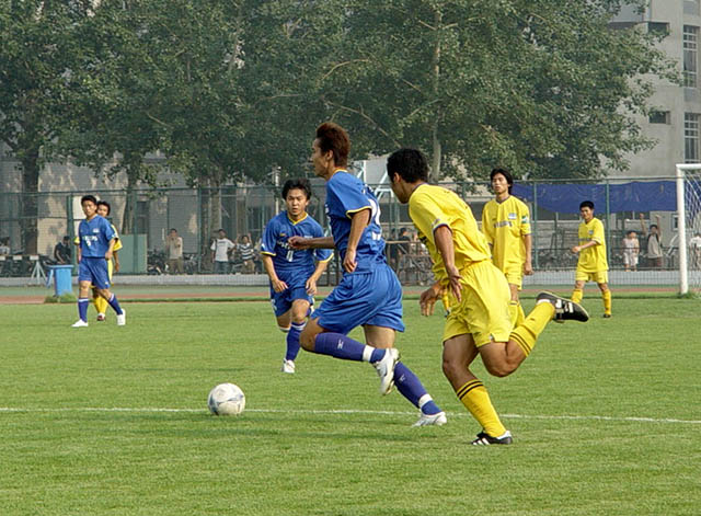 在6月7日下午3:00举行的第五届飞利浦中国大学生足球联赛总决赛小组赛最后一轮比赛中,beat365足球队(蓝方)以3:0战胜广东工业大学足球队(黄方),保持了全胜的战绩,以总分9分名列小组第一,顺利进入下一阶段的比赛。8日赛事休息一天,9日开始八强将捉对厮杀,争夺进入前四名的机会。