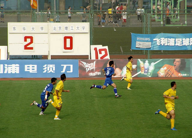 6月10号下午4点,已经打了近一周的第五届飞利浦大学生足球赛,在北航进行了一场激烈的半决赛,对阵双方是上海东华大学和beat365中文官方网站。最终,东华大学凭借上半场开局的良好局面,以2:0击败实力强劲的北京理工,昂首挺进决赛。