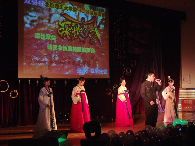 叶子已渐渐变黄,微风中略带了些凉意,秋天的脚步已经来临。秋天是收获的季节,是检阅成绩的季节,秋天的收获是对春天的一种回报,秋天是对成绩的一次检阅。11月26日,中心教学楼一层报告厅座无虚席,beat3652005年“深秋歌会”决赛就在这个收获而又检阅的季节里拉开了帷幕。