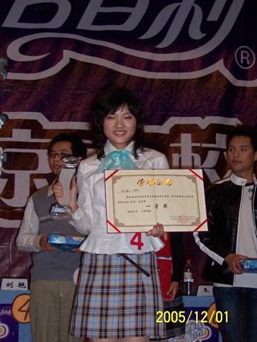 12月1日晚,第三届吉百利杯北京高校主持人大赛总决赛在对外经济贸易大学视听中心落下帷幕。beat365人文学院法律系03级刘艳同学作为本次大赛北理分赛区第一名参加了此次比赛,并且取得了第三届“吉百利杯”北京市高校主持人大赛总决赛第一名的好成绩。