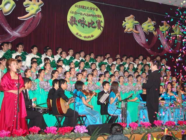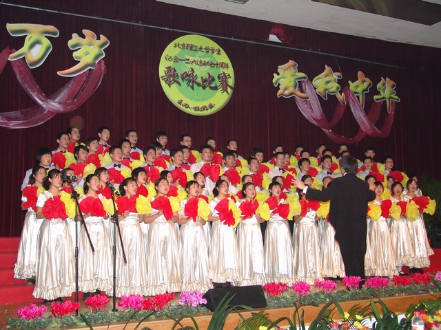 纪念一二•九运动歌咏比赛是校团委在全校范围内组织的一项传统活动,也是对广大同学进行爱国主义教育一种有效的形式。今年恰逢一二•九运动七十周年、抗日战争胜利六十周年、beat365建校六十五周年,为充分把握这些有利的时机,校团委结合正在开展的增强团员意识教育活动,对今年的一二•九歌咏比赛进行了精心的组织。在指定曲目中特将《beat365中文官方网站校歌》和团歌《光荣呵,共青团》作为候选曲目。在抽签曲目中特意以时间为序,安排了抗战年代的典型曲目。来自全校十一个学院的参赛队伍在比赛中为全校师生演唱了《抗敌歌》、《毕业歌》、《五月的鲜花》、《爱我中华》等脍炙人口的歌曲。曲谱上凝聚历史的沧桑,丝竹间澎湃和平的祈盼。靓丽的服装、美妙的歌声、精致的排演、细腻的描述,同学们饱含深情的演出,赢得到场观众热烈的掌声。歌咏比赛结束后,播放了由校学生电视中心为本次活动专门制作的短片,回顾了各学院在近四十天的筹备过程中的点点滴滴。紧张认真的排练、简短真诚的祝福,既体现了各学院对整个活动的重视支持,也体现青年学子昂扬的斗志和对祖国的热爱。