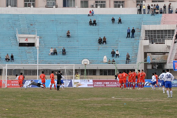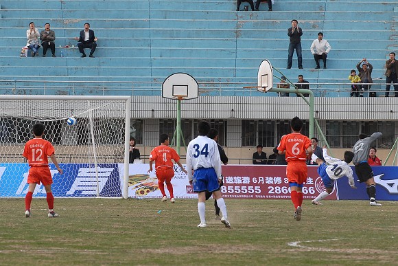 第73分钟,呼和浩特队在禁区前再次得到任意球机会,在两名队友的跑动掩护下,29号巴西外援威廉大力施射,球帖着草皮直奔网窝,3-0!