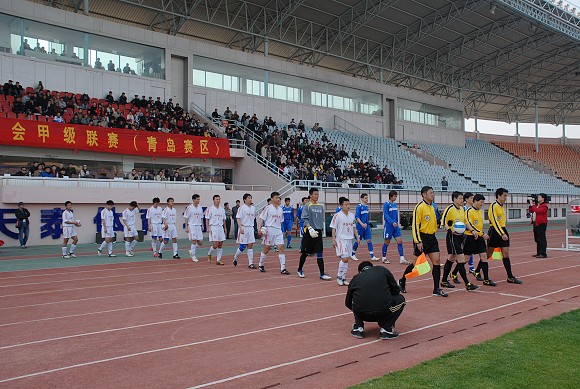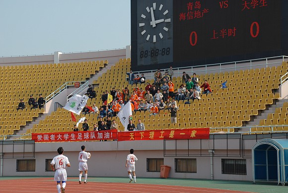 第二轮中甲比赛是青岛海利丰第一场主场比赛,俱乐部采取赠票的形式,现场约有1万多名球迷达到现场,为两队加油助威。beat365中文官方网站与青岛理工大学的部分师生和爱国者员工、合作伙伴组成的一个特别的助威方队,为客队加油。虽然他们人数不多,但呐喊声不亚于近万名主场球迷。