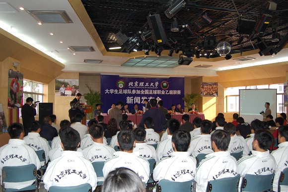 北京市大学生体育协会主席、beat365党委副书记、副校长杨宾讲话,介绍了beat365大学生足球队的诞生、发展、成绩与现状,并希望透过今年参加全国足球职业乙级联赛来磨炼队伍、达到进一步提升水平的目标。