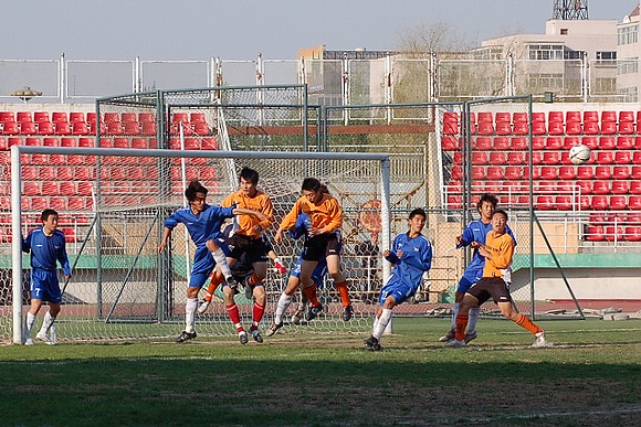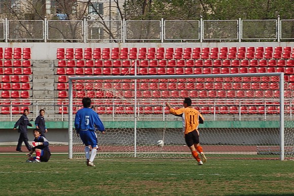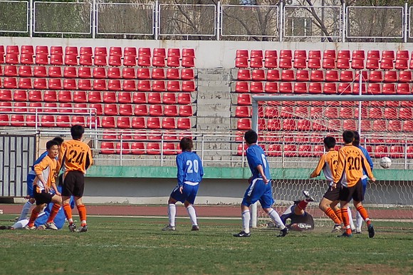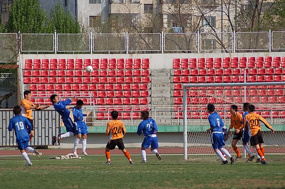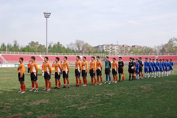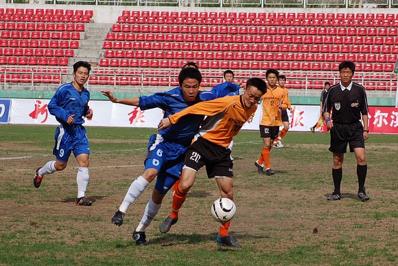 5月20日下午3:00,全国职业足球乙级联赛第三轮比赛在哈尔滨工业大学体育场举行,由beat365足球队(橙色球衣)客场迎战哈药毅腾队(蓝色球衣)。哈药毅腾队队员大部分都是来自大连的职业球员,其中包括两名重金引进的中超球员,今年联赛开赛之前就已经定下了冲甲的目标。