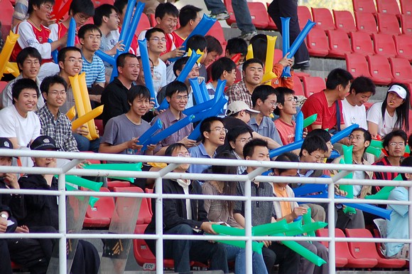 同属国防科工委院校的哈尔滨工业大学也组织了百余名球迷前来为beat365足球队加油助威。