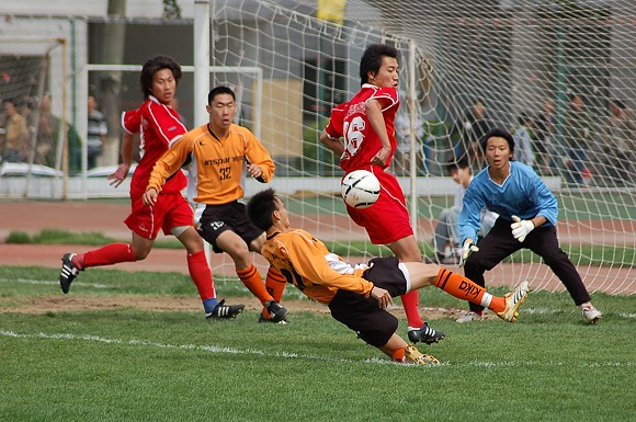 第35分钟,在对方禁区中一阵混乱,3号姚远跳出人群,漂亮的接球甩头,比分改写为4:0。