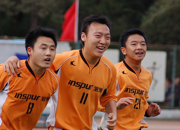 “嘟……”哨声再次吹响,比赛结束,理工队员的出色的技术和文明的作风赢得了现场观众的热烈的掌声和呐喊声。这是理工足球队进入职业联赛以来的第二次主场迎战,在金志扬教练的精心指导下,凭借队员们智慧与技术的完美结合获得了大捷。前四轮比赛beat365中文官方网站足球队在首轮轮空少赛一场的情况下,仍以二胜一平积7分的战绩进入积分榜前列,尤其是上一场比赛以客场战胜积分榜领头羊哈药毅腾,此次又以大比分狂胜积分第二位的青岛黎明,使得乙级职业联赛的各路英豪再也不敢轻视这支貌似“稚嫩”的“学生军”。