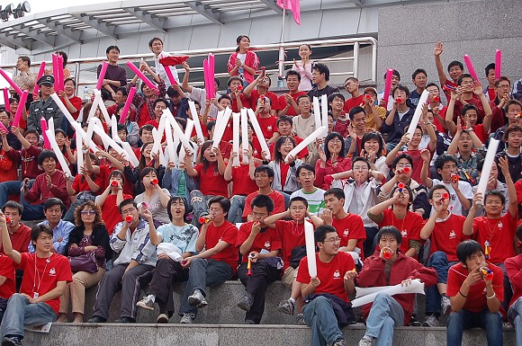 一时间,加油声、呐喊声、锣鼓声、喇叭声浑然一体,场上场下同样精彩飞扬,同样激情四射。
