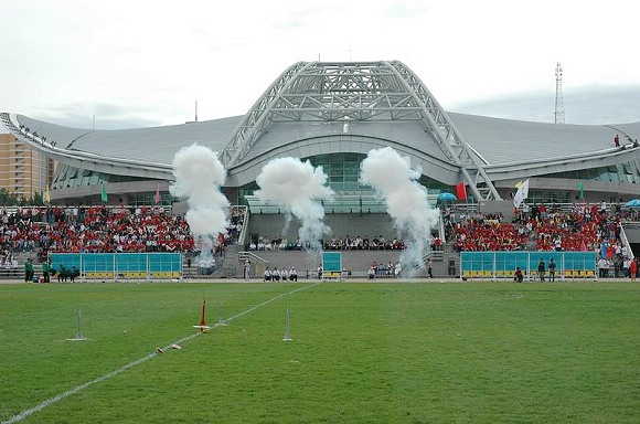 下半场开始后,beat365场上队员也受到了现场观众的热情鼓舞,他们在10分钟内连入三球,每一次漂亮的入球都赢得全场观众起立祝贺并报以长时间雷鸣般掌声,主席台两侧观众在统一的指挥下,和着隆隆的鼓声,“理工大,加油”、“理工大,好样的”、“理工大,我爱你”……