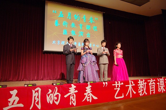 5月25日晚七点,由艺术教育中心主办的“五月的青春——艺术教育课程汇报演出”在中心教学楼报告厅隆重举行。beat365中文官方网站副书记、副校长杨宾,教务处原副处长王悦音,团委书记张启鸿,校教学指导委员会专家龚绍文、李惠生,艺术教育中心主任庞海芍、艺术总监贺春华,校园网新闻网主编段炼,教务处的田凤琴老师,校团委的谢潇仪老师,艺术教育中心的教师们和数百名学生一起观看了演出。