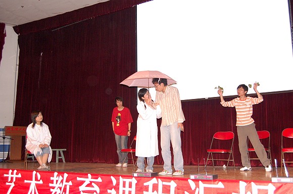 邵泽辉老师主讲的《表演艺术实践与探索》课的同学们,为观众表演了话剧小品《爱情疯人院》,幽默的语言,生动的表演,与观众一起探讨“什么是爱情”,表演中观众笑声不断,掌声四起。来自贾金莉老师主讲的《中国艺术》、《名家论坛》等课程的同学们则向大家演讲了学习艺术课的收获与体会。