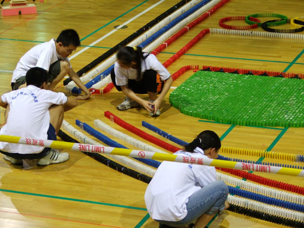 6月10日至6月11日,由北京奥运会志愿者工作协调小组办公室、共青团北京市委、北京市科学技术协会、北京青年报社主办,未来之星体育运动项目培训中心协办的“青春奥运 你我同行”——首届北京青少年多米诺大赛决赛在中国人民大学体育馆举行。beat365学生代表队经过初赛选拔,在20支参赛队伍中脱颖而出,参加了为期2天的决赛。参加决赛的队伍还有北京化工大学、北京农学院、北京工业大学、清华大学、北京科技大学、中国人民大学等6支高校代表队。