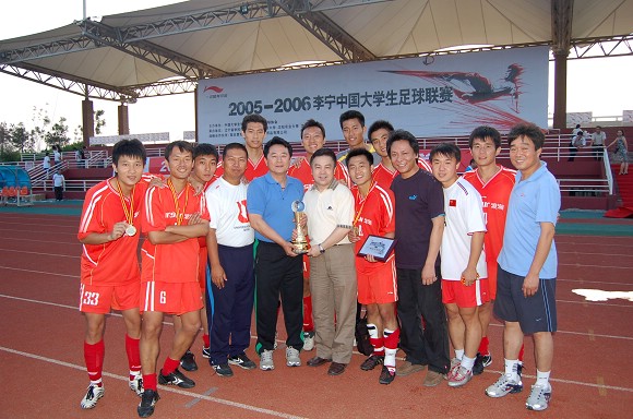 2005~2006李宁中国大学生足球联赛总冠军队伍闪亮登场。