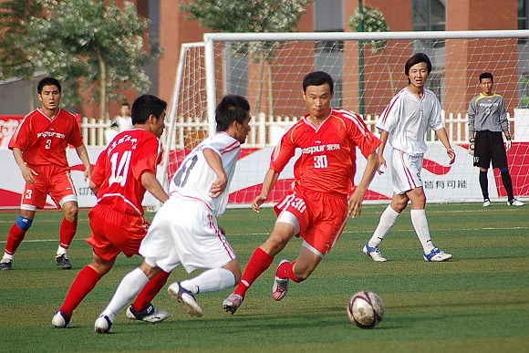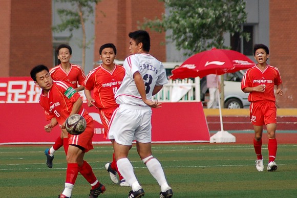 经过双方的奋力拼抢,上半场比分依然为1:0,但身体高大强壮的太原理工大学队已显疲态。
