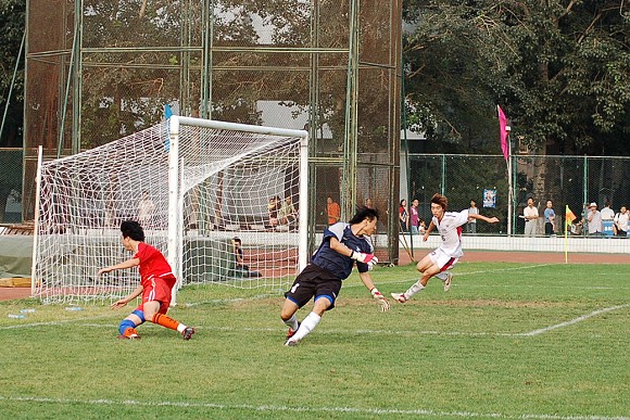 我方队员申辩无效,但此后又接连展开了几轮进攻,与进球差之毫厘。