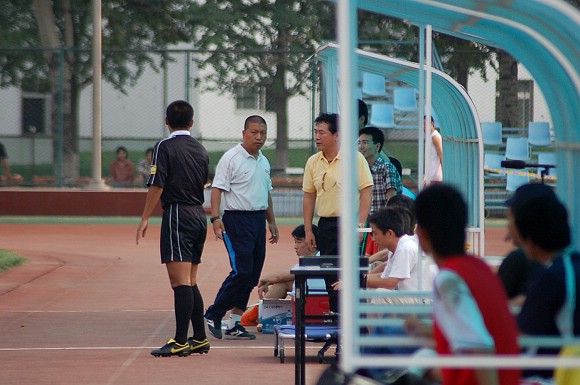 面对如此的偏袒行为,beat365足球队总教练金志扬也忍耐不住,向第四裁判提出交涉。