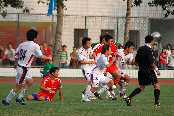 8月26日下午4点,beat365足球队迎来了2006全国职业足球乙级联赛下半程的第二场比赛,在主场迎战目前排名北方赛区第四的哈药毅腾队,最终对手在裁判的“关照”下与我方以0:0战平,双方各取1分。哈药毅腾队在今年乙级联赛开赛之前就是呼声极高的所谓“冲甲”热门队伍,但其在比赛中的各种表现却不时让人大跌眼镜。在上半程beat365足球队客场与其的比赛中,该队队员的踢法就已经让人不敢恭维(点击进入相关链接),这次比赛部分场面更是令人匪夷所思,看来中国足球无论是球员还是裁判都离足球大国的地位还有相当远的路程。