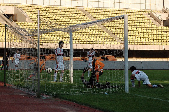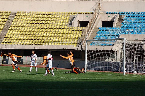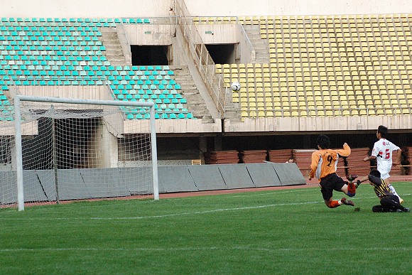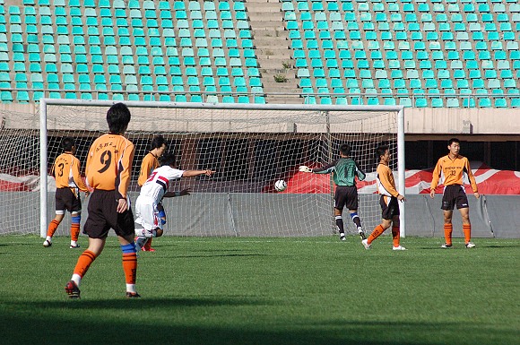 果然不出金指所料,开场仅仅7分钟,辽宁中巴队就利用一次沉底传中的机会,在后方队员的空档中偷袭成功,以1:0领先。场上气氛立即变得似乎有些沉重起来,莫非辽宁中巴最近的“遇强不弱,遇弱不强”的特点要再次发扬广大?