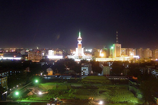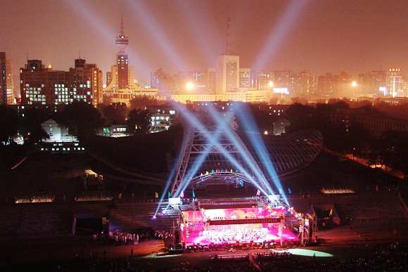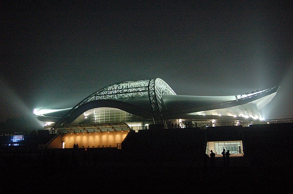 2006年9月19日晚,正在举行启用仪式和校园艺术节开幕式中的体育文化综合馆夜景。