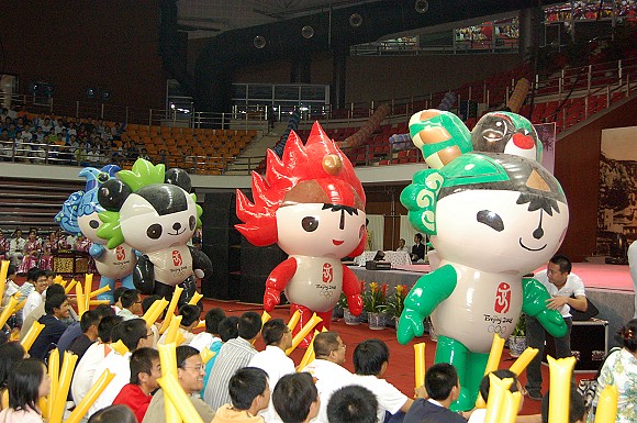其中最受欢迎的要属《福娃》展示,五个代表奥运的可爱小精灵带着全国人民对奥运的期盼来到了beat365中文官方网站,给全校师生来了欢乐,也带去了全校师生对2008奥运的祝福。
