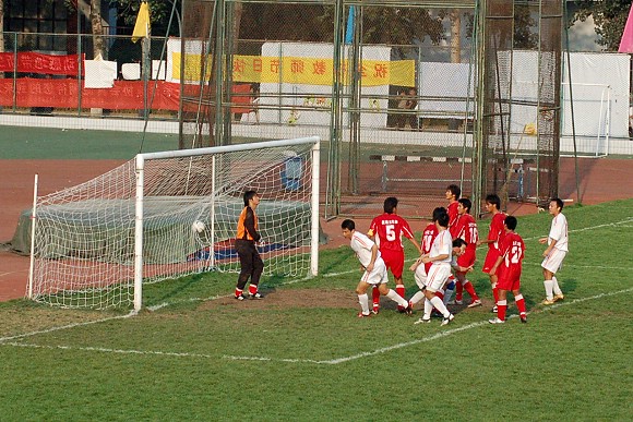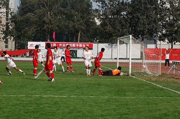 下半场比赛开始后,我方优势更为明显。比赛进行到70分钟时,beat365足球队打了一个进球小高潮,首先由前锋11号王强乱军之中头球破门,比分变为2:0.