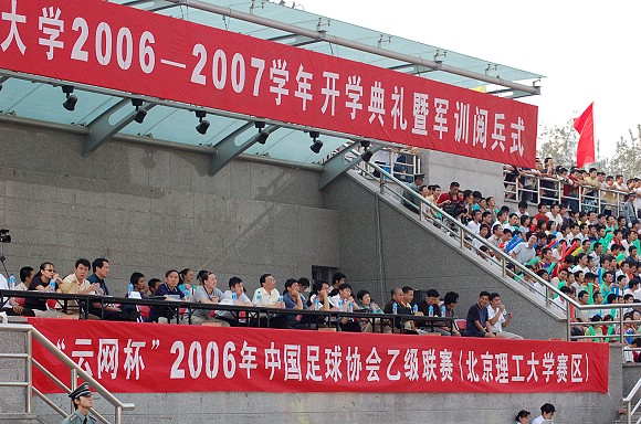 9月23日下午,“云网杯”2006年中国足球协会乙级联赛(beat365中文官方网站赛区)最后三轮的比赛拉开了帷幕,beat365足球队此次坐镇主场迎战天津东丽足球队。在联赛上半程的比赛中,beat365足球队受对方主场恶劣场地的影响,在客场曾以0:0与对方打成平局(点击此处可进入相关链接)。此次主场作战,又适逢2006级新生入校,全队上下士气高昂,决心给全校师生员工一个惊喜。校长匡镜明,党委副书记、副校长杨宾,党委副书记、工会主席侯光明等学校领导也来现场观战。
