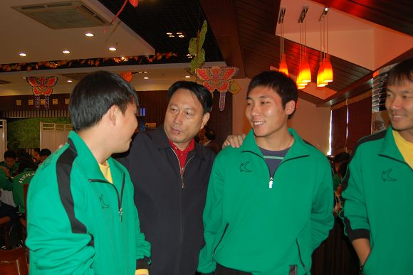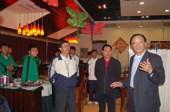 李志祥常务副校长在询问足球队员们的生活和学习情况。